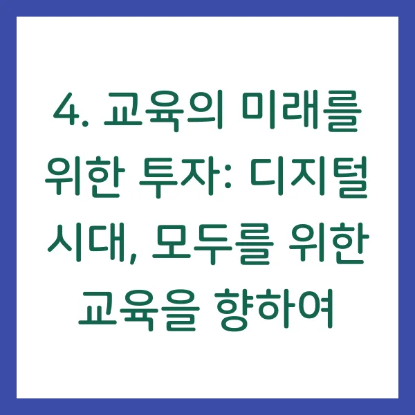 디지털 격차 해소는 단순한 기술적 문제를 넘어, 교육의 형평성과 사회 정의에 관한 문제입니다. 모든 학생에게 동등한 교육 기회를 제공하는 것은 우리 사회의 미래를 위한 필수적인 투자입니다. 지금 우리가 디지털 격차 해소를 위해 적극적으로 노력한다면, 더욱 공정하고 포용적인 교육 환경을 만들 수 있을 것입니다. 미래 세대에게 더 나은 교육의 기회를 제공하기 위해, 지금 바로 행동해야 합니다. 디지털 양극화라는 어둠을 넘어, 모두가 함께 성장하는 밝은 미래를 향해 나아가야 할 때입니다.