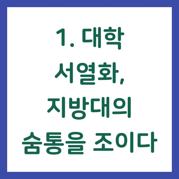 대한민국 곳곳, 지역 사회의 심장 역할을 하던 지방대학들이 벼랑 끝에 서 있습니다. 학령인구 감소라는 거대한 파도 앞에 놓인 것도 모자라, 수도권 대학 쏠림 현상이라는 폭풍우까지 몰아치고 있기 때문입니다. 정원 미달 사태는 이제 뉴스거리도 아니며, 폐교라는 극단적인 선택을 고민하는 대학들도 늘어나고 있습니다. 과연 지방대는 이 위기를 어떻게 극복할 수 있을까요? 그 해답은 단순한 재정 지원에 있지 않습니다. 이 글에서는 지방대 위기의 근본적인 원인인 '대학 서열화'라는 구조적 문제를 파헤치고, 진정한 해결책을 모색해보겠습니다.