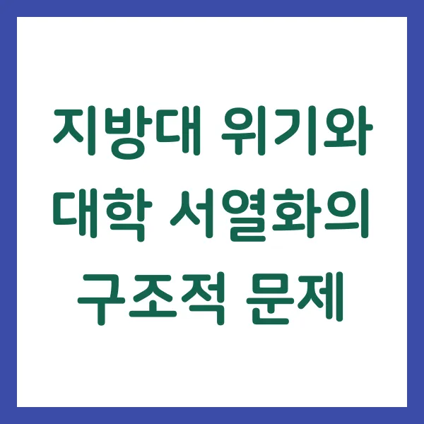 지방대는 단순한 교육기관이 아닙니다. 지역 사회의 경제, 문화, 복지 등 다양한 분야와 깊이 연결된 핵심 축입니다. 하지만 대학 서열화는 이 연결고리를 끊어내고 있습니다. 지방대가 무너지면 지역 경제는 활력을 잃고, 지역 사회는 균형 발전의 동력을 상실합니다. 이는 곧 지역 소멸이라는 심각한 결과로 이어질 수 있습니다. 지방대의 위기는 단순히 대학만의 문제가 아니라, 지역 사회 전체의 생존과 직결된 문제입니다.