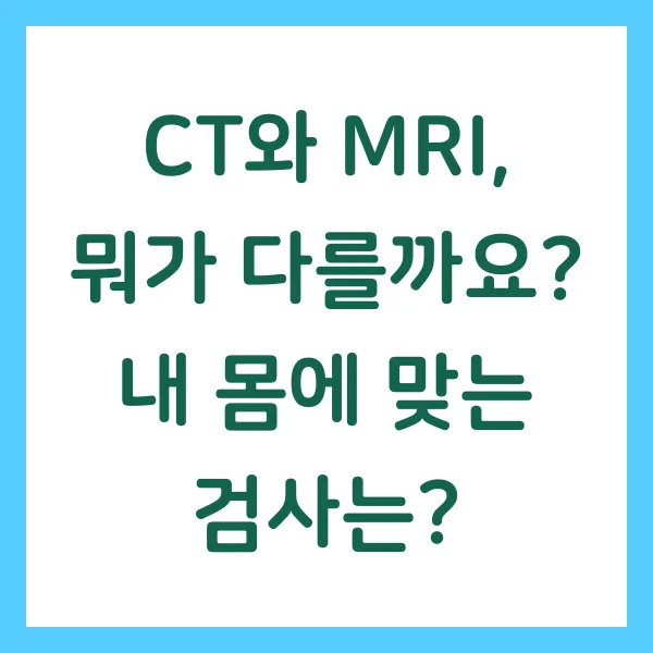 건강검진이나 병원 진료 중 CT와 MRI 촬영을 권유받은 경험, 있으신가요? 두 검사 모두 우리 몸속을 들여다보는 중요한 영상 진단 검사지만, 그 원리와 활용 목적은 다릅니다. "CT와 MRI, 뭐가 다른 거지?" 궁금해하시는 분들을 위해, 이 글에서는 CT와 MRI의 차이점을 쉽고 자세하게 풀어드리겠습니다. 어떤 검사가 나에게 더 적합한지, 함께 알아보아요!