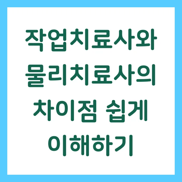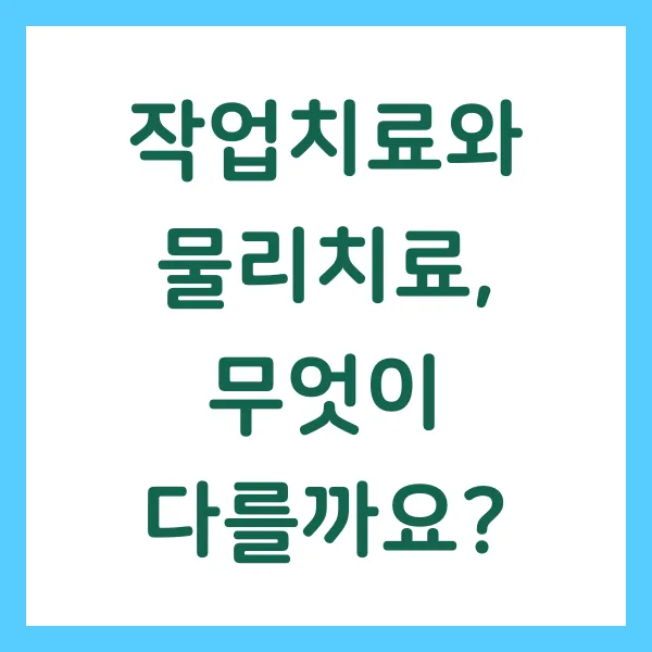 | 치료 방법 | 운동치료, 전기치료, 열/냉치료, 도수치료 등 | 일상생활 동작 훈련, 인지 재활 훈련, 감각 통합 훈련 등 |