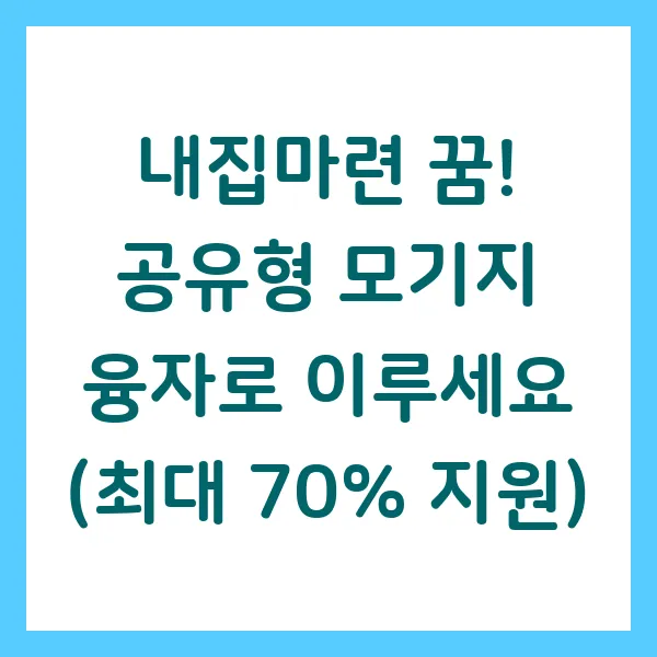 내 집 마련의 꿈, 이제 더 이상 꿈이 아닙니다! 치솟는 집값과 부담스러운 금리 때문에 고민이시라면, 정부 지원 공유형 모기지 융자 상품 이 훌륭한 해결책이 될 수 있습니다. 최대 70%까지 지원되는 파격적인 혜택! 지금 바로 알아보고 내 집 마련의 기회를 잡으세요! 수익 공유형, 손익 공유형 등 다양한 옵션을 통해 나에게 딱 맞는 상품을 선택할 수 있습니다.