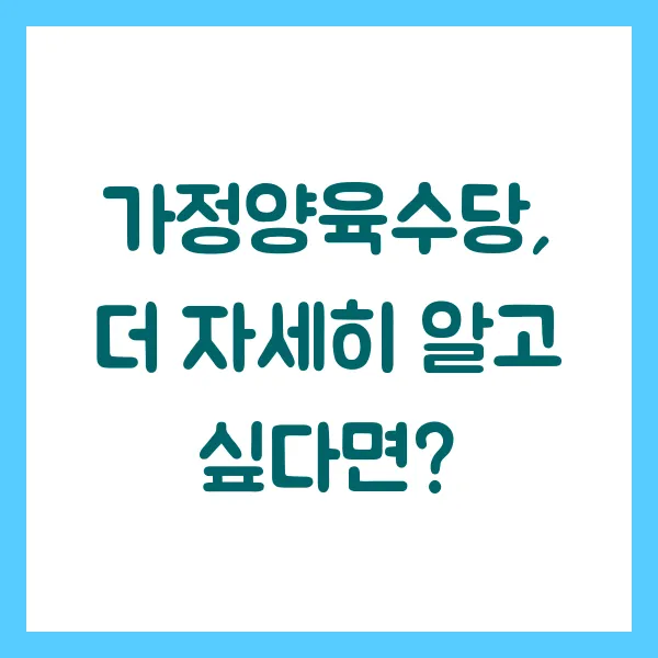 가정양육수당은 단순한 지원금을 넘어, 우리 아이들의 밝은 미래를 위한 투자입니다. 정부의 지원 정책을 적극 활용하여 양육 부담은 덜고, 아이와 함께 더욱 행복한 시간을 보내시길 바랍니다. 가정양육수당, 꼼꼼하게 챙겨서 육아에 큰 힘이 되도록 활용하세요! 😄