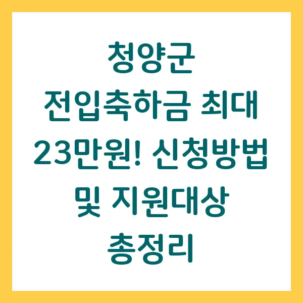 청양군으로 이사를 고려하고 있다면?! 주목하세요! 인구 감소 문제 해결을 위해 청양군이 야심 차게 준비한 전입축하금 제도를 소개합니다. 최대 23만 원의 지원금 혜택, 놓치지 마세요! 지원 대상, 신청 방법, 지원 내용, FAQ 등 모든 정보를 여기에서 확인하고, 청양군에서 새로운 삶을 시작해보세요! #청양군 #전입축하금 #지원금 #이사 #정착지원 #지역경제활성화