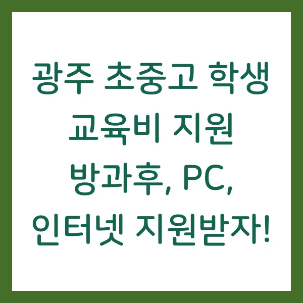 교육은 우리 아이들의 미래를 위한 가장 확실한 투자입니다. 하지만 경제적인 어려움이 아이들의 꿈을 가로막는 장벽이 되어서는 안 됩니다. 광주광역시 교육청은 저소득층 가정의 학생들이 마음껏 공부하고 꿈을 펼칠 수 있도록 방과후학교 자유수강권, PC, 인터넷 통신비 등 다양한 교육비 지원 사업 을 제공하고 있습니다. 지금 바로 자격 요건을 확인하고 신청하세요! 미래를 향한 힘찬 발걸음, 광주교육이 함께합니다!