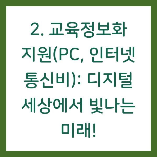 정보 접근성은 디지털 시대 교육의 핵심입니다. 모든 학생들이 정보의 바다에서 자유롭게 항해하고 지식을 습득할 수 있어야 합니다. 광주광역시 교육청은 저소득층 가정 학생들의 정보 격차를 해소하고 디지털 역량을 강화하기 위해 PC와 인터넷 통신비를 지원 합니다!