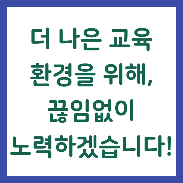 대전광역시 교육청은 현장체험학습비 지원 사업 외에도 다양한 교육 복지 정책을 통해 학생들의 꿈과 희망을 지원하고 있습니다. 더 나은 교육 환경을 만들기 위한 노력은 계속될 것입니다. 많은 관심과 참여 부탁드립니다!