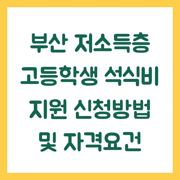 저소득층 가정의 고등학생 자녀를 둔 부모님들 주목! 교육의 꿈을 향한 힘찬 날갯짓을 응원하기 위해 부산시 교육청이 든든한 지원책을 마련했습니다. 바로 저소득층 고등학생 석식비 지원 사업 ! 꿈을 향한 도약을 위한 밑거름이 되어줄 석식비 지원, 지금 바로 자격요건과 신청방법을 확인하고 혜택 받으세요! (지원대상, 신청방법, 지원내용, FAQ)