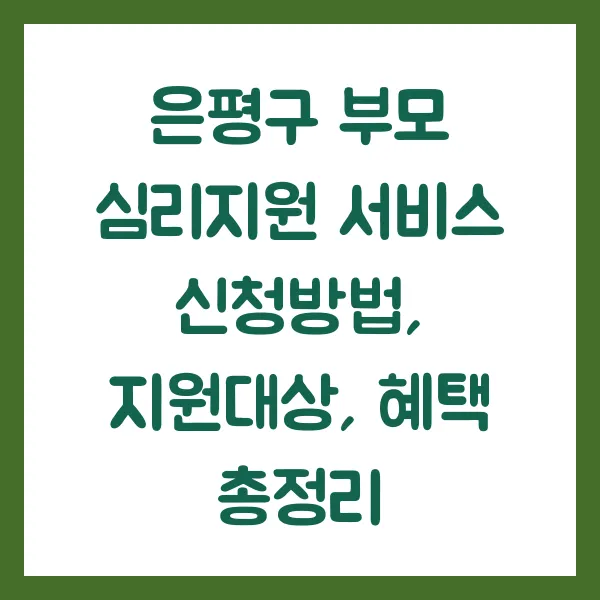 아이 키우기, 정말 보람차지만 힘든 여정이죠? 😩 육아 스트레스와 심리적 어려움으로 혼자 끙끙 앓고 있는 은평구 부모님들 주목! 은평구가 든든하게 지원하는 부모 심리지원 서비스, 지금 바로 신청하세요! 임신, 출산, 양육 과정에서 겪는 심리적 불안 해소는 물론, 가족 기능 향상까지! 놓치면 후회할 혜택, 지금부터 자세히 알려드립니다.