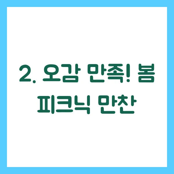 꽃/화병: 봄꽃 향기 가득한 피크닉! 튤립, 프리지아 등 화사한 봄꽃으로 피크닉 공간을 더욱 아름답게 꾸며보세요. 작은 화병을 준비하면 감각적인 플레이팅까지 가능하다는 사실!