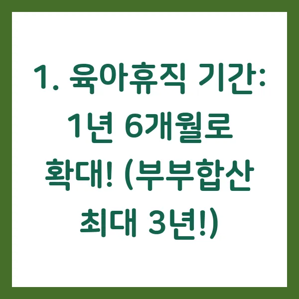 드디어 2025년! 육아휴직 제도가 대폭 확대되었습니다! 워킹맘, 워킹대디 여러분, 주목하세요! 최대 1년 6개월, 게다가 부부 합산 최대 3년?! 급여도 대폭 인상! 최대 250만 원, 한부모는 300만 원?! 이 기회, 놓치지 마세요! 육아휴직 기간, 급여, 신청방법, 중소기업 지원까지 꼼꼼하게 알려드립니다!