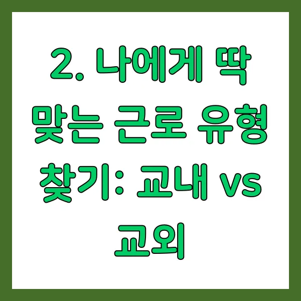지역아동센터, 공공기관, 사회복지시설 등 캠퍼스 밖, 더 넓은 세상에서 다양한 경험을 해볼 수 있는 기회입니다. 교내근로보다 높은 시급을 받을 수 있고, 전공 관련 기관에서 근무하며 실무 경험을 쌓아 취업 경쟁력을 높일 수도 있습니다. 단, 근무지까지 이동 시간과 교통비를 고려해야 하고, 학업 시간과의 조율이 필요하다는 점, 잊지 마세요!